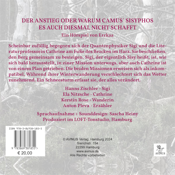 Scheinbar zufällig begegnen sich der Quantenphysiker Sigi und die Literaturprofessorin Cathrine am Fuße des Brocken im Harz. Sie beschließen, den Berg gemeinsam zu besteigen. Sigi, der eigentlich Sisy heißt, ist, wie sich bald herausstellt, in einer Mission unterwegs, aber auch Cathrine ist von einem Plan getrieben. Die beiden Missionen erweisen sich als inkompatibel. Während ihrer Winterwanderung verschlechtert sich das Wetter zunehmend. Ein Schneesturm erfasst sie, der alles verändert.